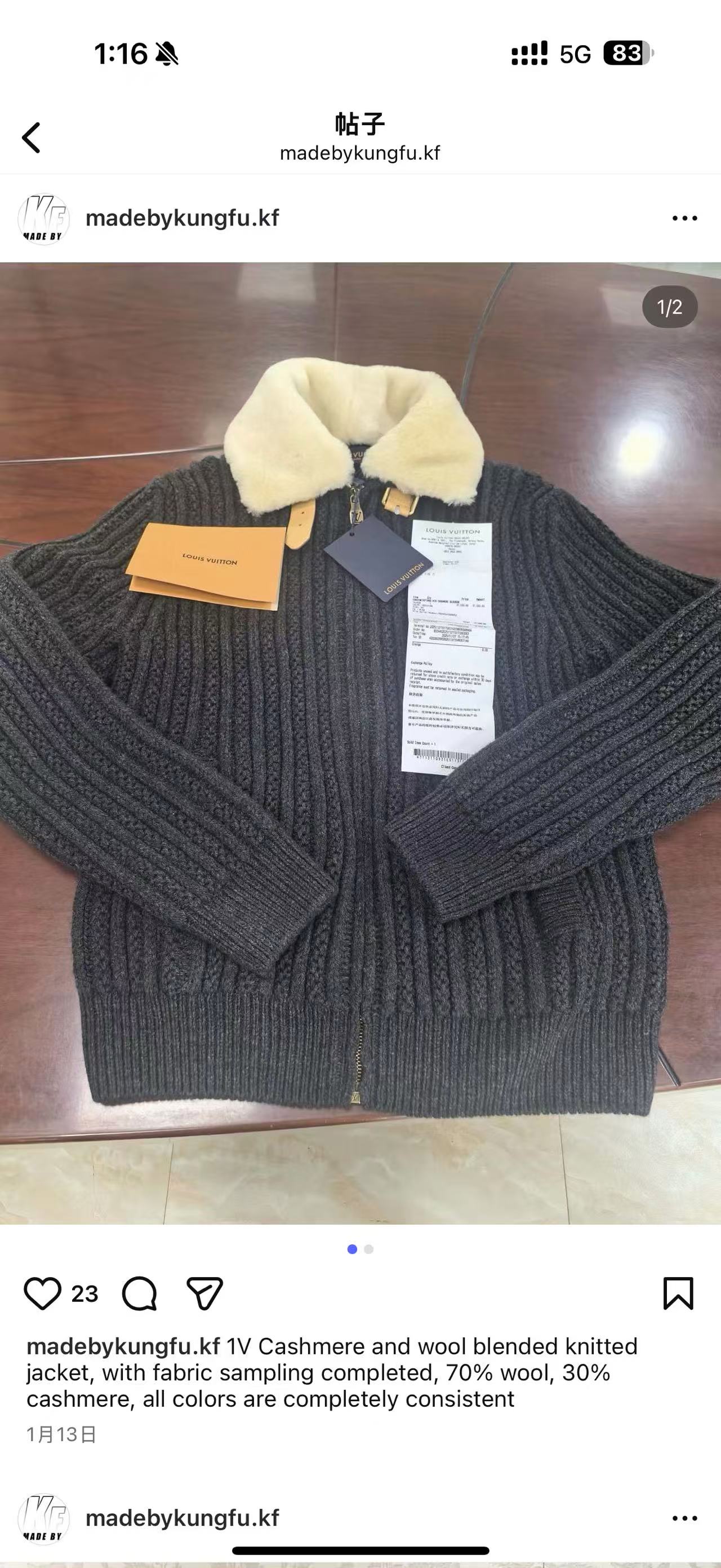 1V cashmere wool blend with wool collar jacket