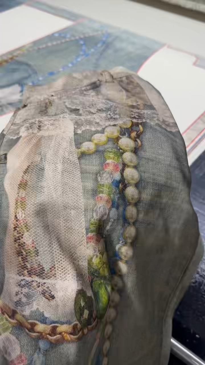 ACNE 3D printed pearl chain jeans