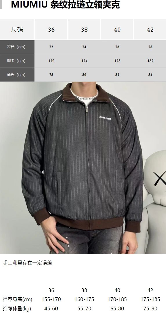 Item ID 8045 Miu Miu “100% cotton wool ”FW25 Qixi series striped zipper stand colla