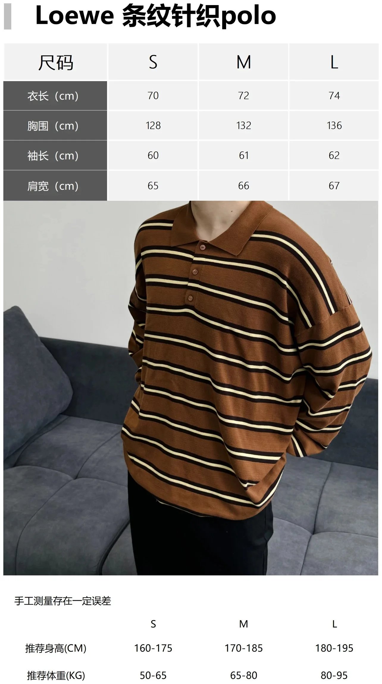 Item ID 8202 L0EWE- Luo Yiwei -2024ss- Striped knitted cotton polo shirt - Brown st