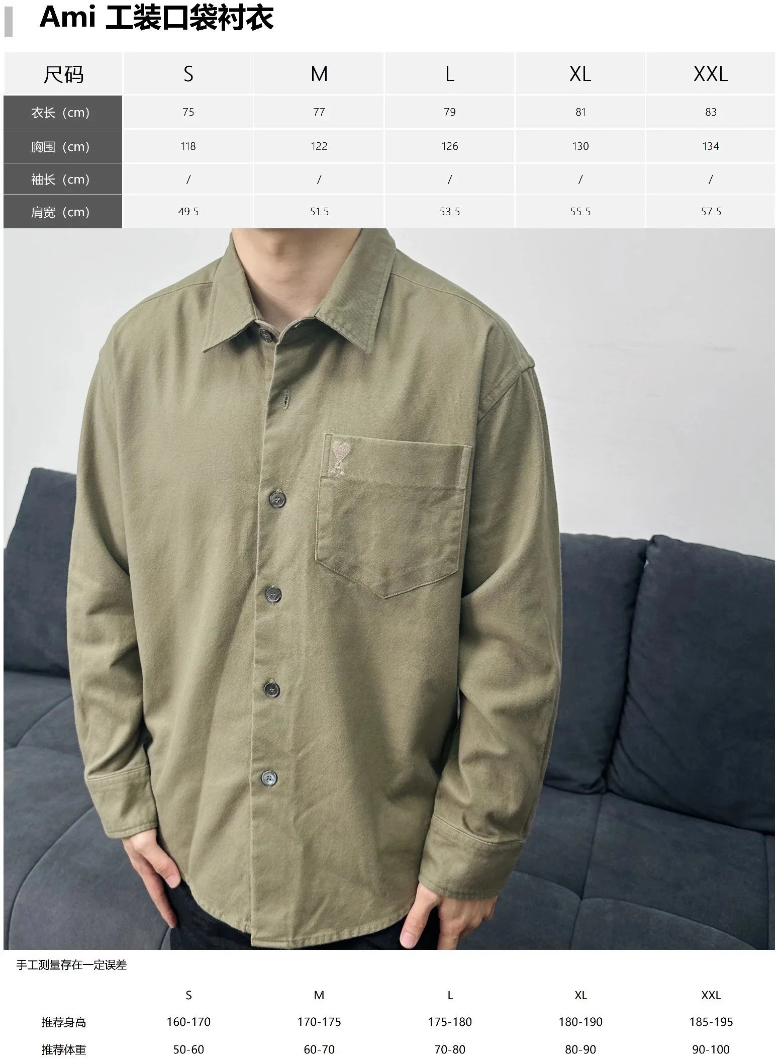 Item ID 8212 AmiParis-2023ss Classic - workwear pocket shirt - heavyweight fabric