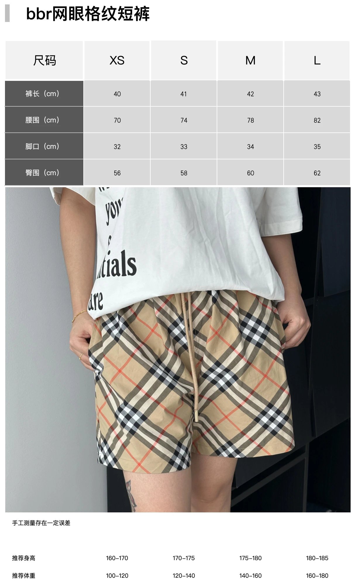 Item ID 8230 BBR Burberry - classic plaid shorts -“ Correct nylon fabric ”- Plaid a