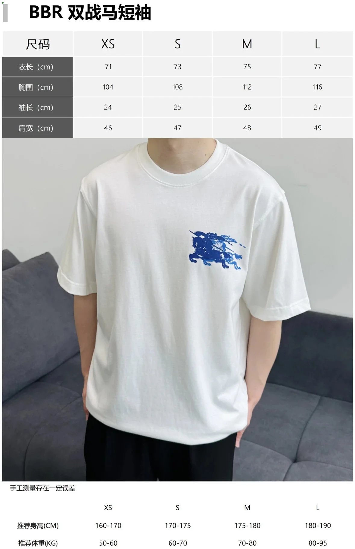 Item ID 8298 Burberr-BBR-2025ss- Shadow Double Blue War Horse Print Short Sleeve -