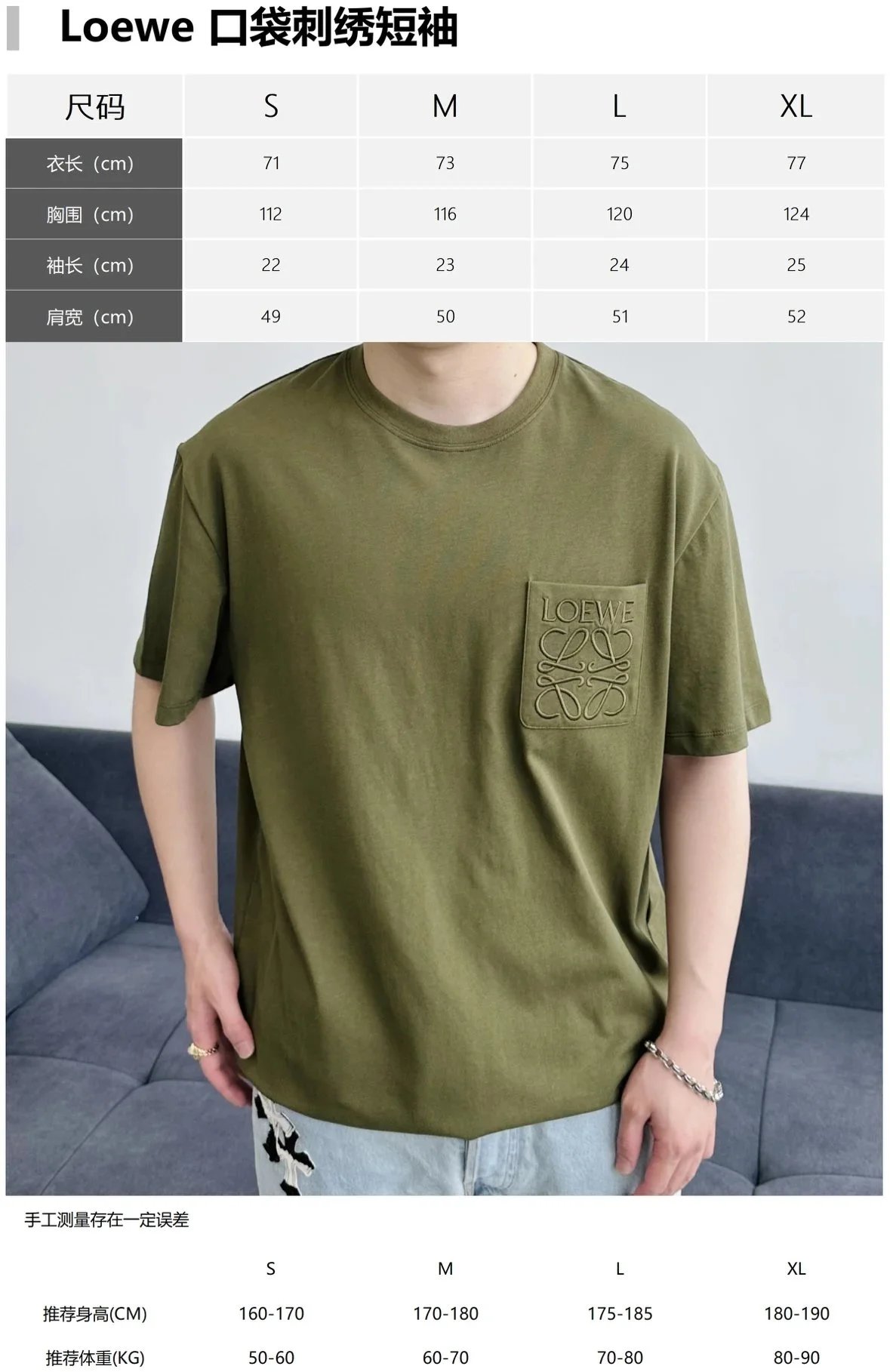 Item ID 8319 L0EWE-Roewe -2025s Pocket Embroidered Basic Round Neck Short Sleeve -