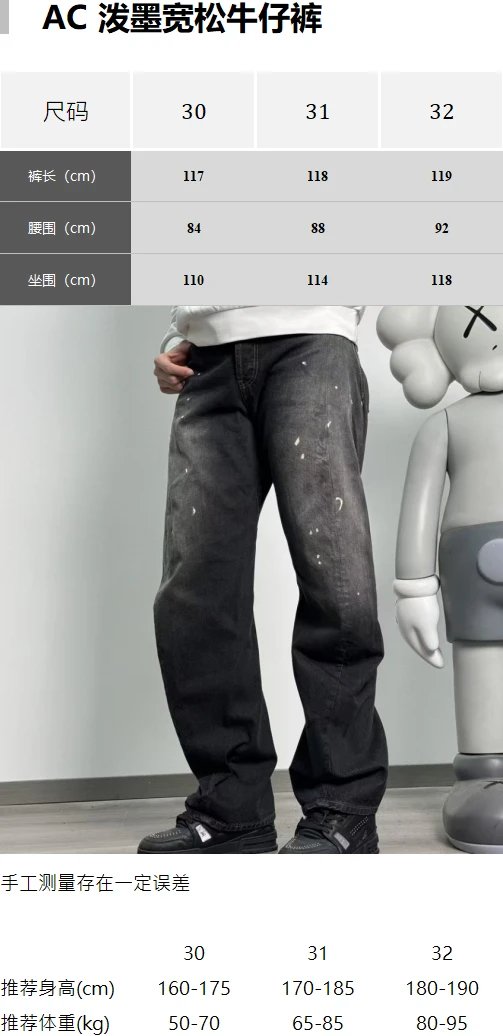 Item ID 8336 Acne Studios SS25-2006F Ink Splashed Loose Low Waist Wide Leg Ultra Lo