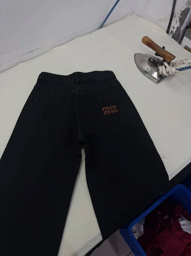 Item ID 9014 M1U solid color washed denim jeans with embroidered back pocket
